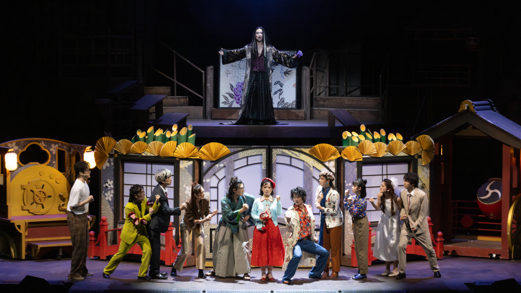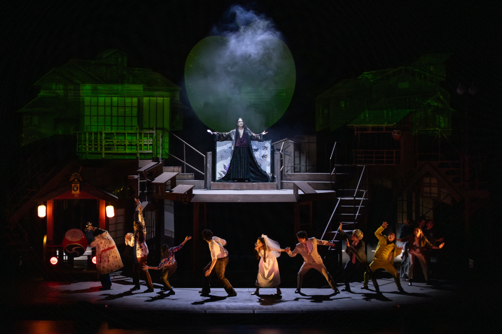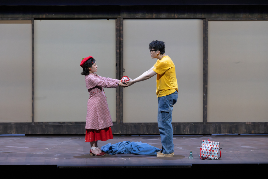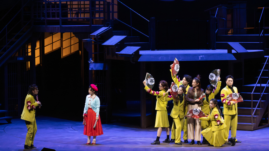 舞美以双层木质架构,构建出“町屋”这一极具日式美学的空间。春日的酒吧街、夏夜的旧书市、秋季的学园祭、冬日的病房,四季场景在有限的空间中流转。